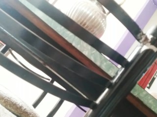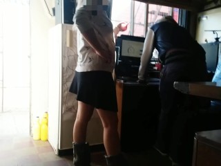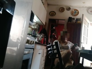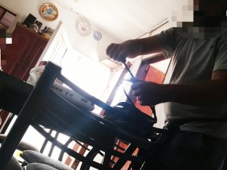 Housewife without panties shows her pussy to the technical service and spies on her having hard sex